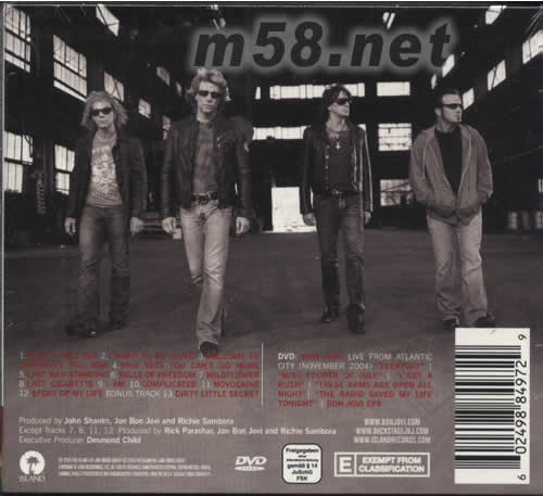 01. Have A Nice Day 02. I Want To Be Loved 03. Welcome To Wherever You Are 04. Who Says You Can't Go Home 05. Last Man Standing 06. Bells Of Freedom 07. Wildflower 08. Last Cigarette 09. I Am 10. Complicated 11. Novocaine 12. Story Of My Life BONUS TRACK 13. Dirty Little Secret DVD: BON JOVI:LIVE FROM ATLANTIC CITY(NOVEMBER 2004) 01. EVERYDAY 02. MISS FOURTH OF JULY 03. I GET A RUSH 04. THESE ARMS ARE OPEN ALL NIGHT 05. THE RADIO SAVED MY LIFE TONIGHT 06. BON JOVI EPK