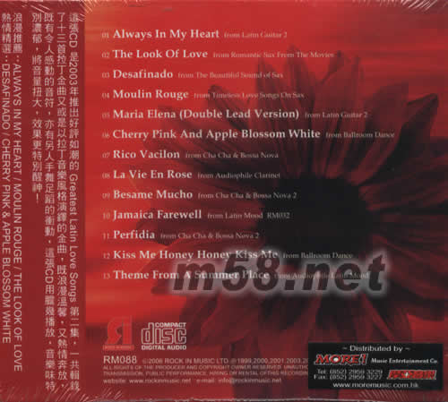 1 Always In My Heart 2 The Look Of Love 3 Desafinado 4 Moulin Rouge 5 Maria Elena 6 Cherry Pink And Apple Blossom White 7 Rico Vacilon 8 La Vie En Rose 9 Besame Mucho 10 Jamaica Farewell 11 Perfidia 12 Kiss Me Honey Honey Kiss Me 13 Theme From A Summer Place
