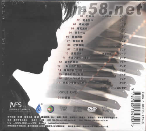 CD 1、行路難 2、完全因你 3、哎喲媽媽 4、嘎瓦麗泰 5、天各一方 6、故鄉的云 7、萊茵河畔 8、紅旗飄飄 9、二月里來 10、為愛受苦 11、有多少愛可以重來 12、爸爸的草鞋 13、一起走過的日子 14、綠葉對根的情意 15、滿山紅葉似彩霞 16、送我一朵玫瑰花 17、我怕你看見天已黑 BONUS DVD 1、行路難