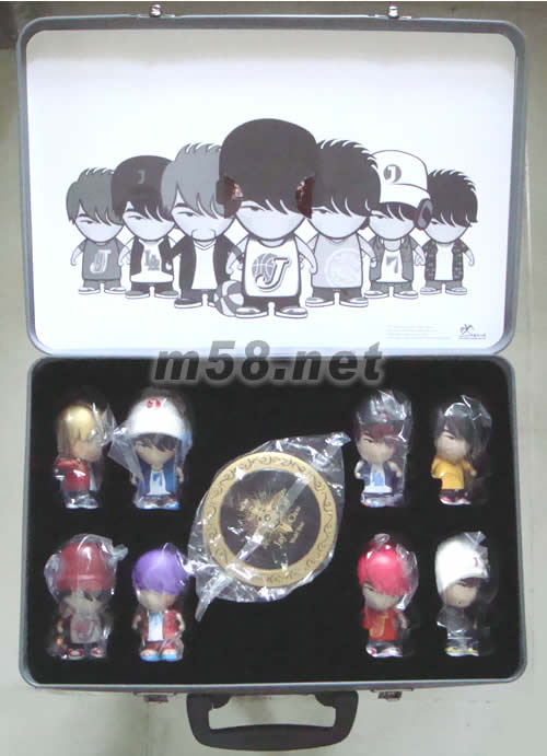 2007年世界巡回演唱會(huì)系列JAY公仔音樂舞臺(tái)精裝版(大套裝)(m58.net) 外包裝紙箱尺寸:32*23*10CM 公仔高度:7.5CM *7款巡回演出地區(qū)公仔+1款特別版公仔 *銅制圓型音樂盒,特別編制不能說的秘密主題曲:路小雨(直徑8CM) *獨(dú)一無二,限量編號典藏卡 *超酷裝備,無敵金屬手提箱(20*30*9.3CM)