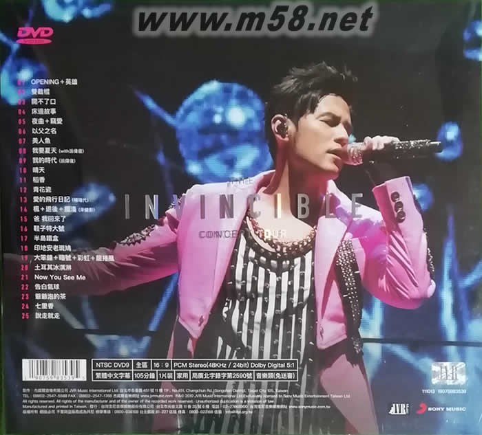 地表最強THE INVINCIBLE 演唱會DVD (臺灣精裝鐵盒版)(m58.net) 「地表最強THE INVINCIBLE」演唱會 DVD、BD 精裝鐵盒版 連太空人也迫不及待!回到地表,飛上太空遁入海底! 演出成本突破1.6億 科技+幻想絕對衝擊4D感官 從出道開始的第一套演唱會,到第七套【地表最強】演唱會,周杰倫就不斷創下新紀錄、不斷開發新創意、不斷超越歷史、創造歷史,『周』而復始,地表最強!