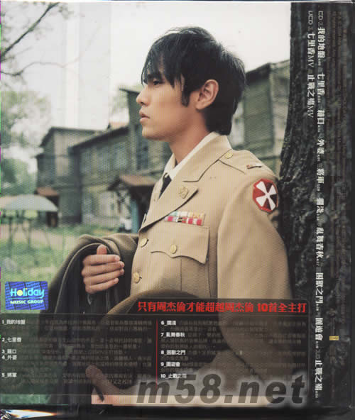 01. 我的地盤 02. 七里香 03. 借口 04. 外婆 05. 將軍 06. 擱淺 07. 亂舞春秋 08. 困獸之斗 09. 園游會 10. 止戰之殤 VCD 01. 七里香 MV 完整版MV,特地前往日本鄉間取景,營造音樂的浪漫詩境,一幅幅唯美畫面,讓你一次看盡。 02. 止戰之殤 MV 至海參威拍攝制作的大成本音樂錄影帶,杰倫一人飾演說盡人與軍官兩種角色,像一部藝術性濃郁地史詩電影,值得反覆品味珍藏。