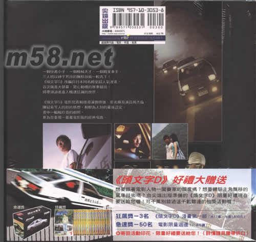 書簽數量有限,先到先得 傳奇背景 [Introduction] 1995年,一本日本漫畫的誕生令全球超過十億人為它瘋狂,總銷量至今超過三千九百萬本,亦引發出39集動畫劇集、23本小說版,以及一套動畫電影的出現。2003年,更跨越媒體,推出令人引首以待的PS2游戲光盤,而這個傳奇就是《頭文字D》。 《頭文字D》為日本講談社Young Magazine連載多年的暢銷漫畫,為日本漫畫家重野秀一作品,也是日本賽車漫畫中最受歡迎的一部。 故事敘述主角藤原拓海駕駛自家送豆腐用的TOYOTA AE86和來自各地的賽車高手在曲折的山道上竸速,用神乎其技的飄移技術帶領讀者進入山路賽車的極速世界。作者透過漫畫不僅把山道賽車的實況變成宛如真實一般,對于山道、車輛性能,及車手心態等也都有詳盡的描述。 故事中一群獨具風格的人物角色更是傳達了年輕人熱血沸騰、追逐理想的青春活力?,F在,國際知名導演劉偉強及麥兆輝繼《無間道》三部曲后,再次攜手把這段成功的賽車傳奇化為真人實景拍攝的電影版! 本事 [Outline of the Story] 一個快遞小子、一個機械天才,和一個職業車手,三人將以驚心動魄的飄移技術一較高下,誓言爭奪日本秋名山上的車神頭銜!五年來,十八歲的藤原拓海每天駕著父親破舊的TOYOTA AE86運送豆腐,不知不覺中練得一手出神入化的飄移技術。對汽車毫無興趣的他被父親慫恿參加山路賽,以平日送貨的舊車越級挑戰Nightkids車隊的GTR,比賽結果似乎早有定論。豈料拓海竟在眾人錯愕之下勝出,一夜成名,更激發起潛藏在他體內遺傳的賽車因子,不斷挑戰高難度的山路競賽,在曲折蜿延的賽道上追尋自己的夢想!