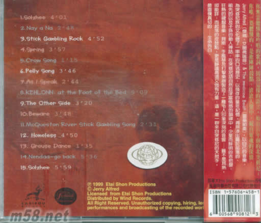 1 Solzhee(傳說中的小孩) 2 Nay a Na 3 Stick Gambling Rock(小石頭) 4 Spring(春天) 5 Crow Song(烏鴉之歌) 6 Pelly Song(培里之歌) 7 As i Speak(當我說) 8 KEHLONN:at the Foot of the Bed(床前) 9 The other Side(彼方) 10 Beware(警醒) 11 McQueston River Stick Gambling Song(麥可昆士頓河畔 12 Homeless(流浪者) 13 Grouse Dance(松雞之舞) 14 Nendaa-go back(回顧) 15 Solzhee(傳說中的小孩)