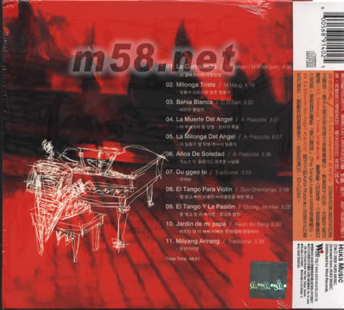 1 La Cumparsita 假面游行 2 Milonga Triste/ Hugo Diaz米蘭嘉之舞 3 Bahia Blanca 布蘭卡港口 4 La Muerte del Angel/ Astor Piazzolla 天使之死 5 La Milonga del Angel/ Astor Piazzolla 天使之歌 6 Anos De Soledad/ Astor Piazzolla 孤寂 7 Du ggeo bi/韓國傳統樂曲 8 El Tango Para Violin/Duo Orientango 9 El Tango Y La Pasion/Chung.Jin Hee 10 Jardin de mi papa/Kwan.Kil Sang 11 Milyang Arirang/韓國傳統歌謠