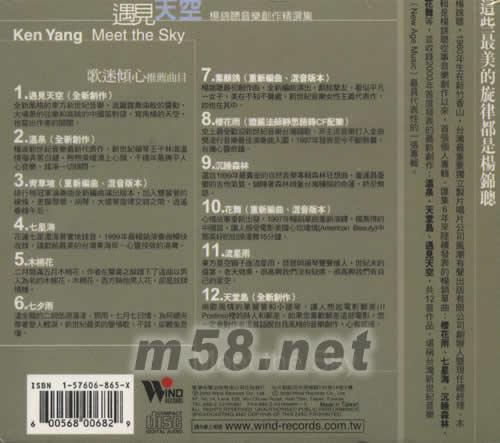 01. 遇見(jiàn)天空(全新創(chuàng)作) 全新風(fēng)格的東方新世紀(jì)音樂(lè),波麗露舞曲般的靈動(dòng),大場(chǎng)景的弦樂(lè)和高眺的中國(guó)笛對(duì)望,寫(xiě)南橫的天空,也寫(xiě)出作者的開(kāi)闊。 02. 溫泉(全新創(chuàng)作) 楊派新世紀(jì)音樂(lè)最新代表作,新世紀(jì)鋼琴王子林海溫情撥弄黑白鍵,煦煦泉暖涌上心頭,千禧年最撫平人心音樂(lè),滌凈一切煩悶。 03. 青草坡(重新編曲、混音版本) 排行榜冠軍演奏曲全新編曲演出版本,加入雙簧管的線條,更顯翠碧,胡琴、大提琴旋律交錯(cuò)之間,逍遙春綠午后。 04. 七星海 花蓮七星潭海景實(shí)地錄音,1999年最暢銷演奏曲暢快收錄,謹(jǐn)獻(xiàn)給最美的臺(tái)灣東海岸-心靈投宿的港灣。 05. 木棉花 二月開(kāi)滿五月木棉花,作者在驚喜之余譜下了這曲以男人為名的木棉花。木棉花,西方稱他男人花,卻是放肆情種。 06. 七夕雨 溫金龍的二胡低回蕩漾,那雨,七月七日情,為何總夾帶著愛(ài)人輕淚,新世紀(jì)最美的愛(ài)情歌,不該、卻難免悲傷。 07. 素顏鴿(重新編曲、混音版本) 楊錦聰最初創(chuàng)作曲,全新編曲演出,獻(xiàn)給摯友。看似平凡一女子,美在不知不覺(jué)處,新世紀(jì)音樂(lè)女性主義代表作,你也在其中。 08. 櫻花雨(證嚴(yán)法師靜思語(yǔ)錄CF配樂(lè)) 史上最受歡迎新世紀(jì)音樂(lè)臺(tái)灣歌,非主流音樂(lè)打入金曲獎(jiǎng)流行音樂(lè)最佳演奏曲入圍,1997年發(fā)表至今不斷熱賣,臺(tái)灣心靈奇跡。 09. 沉睡森林 選自1999年最賣座的自然音樂(lè)專輯森林狂想曲,董運(yùn)昌憂郁的吉他氣質(zhì),鋪陳著森林頑童臺(tái)灣獼猴的命運(yùn),終至無(wú)語(yǔ)。 10. 花舞(重新編曲、混音版本) 心情故事重新出發(fā),1997年暢銷單曲重新演繹,楊萬(wàn)得的中國(guó)笛,讓人感受電影美國(guó)心玫瑰情(American Beauty)中那美好的街頭漫舞15分鐘。 11. 流星雨 東方星空獅子座流星雨,琵琶與揚(yáng)琴聲聲催人,世紀(jì)末的盛宴,老天做東,很高興我們沒(méi)有缺席。很高興我們有自己的天空。 12. 天堂島(全新創(chuàng)作) 南歐風(fēng)情的單簧管和小提琴,讓人想起電影郵差(Ⅱ Postino)里的詩(shī)人和郵差。如果您喜歡郵差這部電影,您一定會(huì)對(duì)作者這首超脫自我風(fēng)格的音樂(lè)創(chuàng)作,心有戚戚。