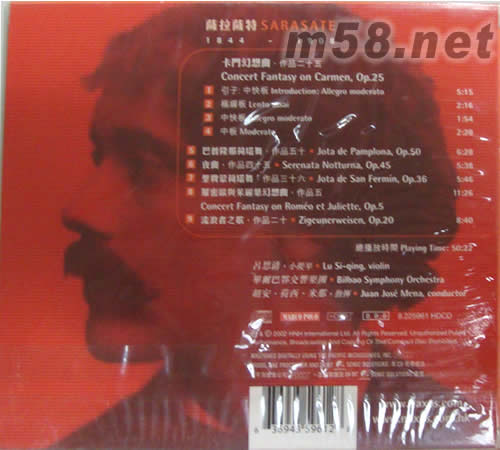 卡門幻想曲 作品二十五 Concert Fantasy on Carmen Op.25 1. 引子:中快板 Introduction:allcgro moderato 2. 極緩板 Lento 3. 中快板 4. 中板 5. 巴普隆那荷塔舞,作品五十. Jota de P. amplona,Op.50 6. 夜曲,作品四十五. Screnata Notturna.Op.45 7. 圣費蒙荷塔舞 作品三十六.Jota de San Fermin,Op.36 8. 羅密歐與朱麗葉幻想曲 .作品五 Coneert Fantasy on Romeo et Juliette,Op.5 9. 流浪者之歌 ,作品二十 .Zigeunerweisen,Op.20