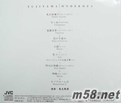 01 鬼太鼓座:鬼太鼓囃子 ONDEKO-BAYASHI 02 鬼太鼓座:弓ヶ浜 YUMIGAHAMA 03 鬼太鼓座:富岳百景 FUJIYAMA 04 鬼太鼓座,田村虎蔵:花や今宵の(使用曲:青葉の笛) HANA YA KOYOI NO 05 鬼太鼓座:三國 MIKUNI 06 鬼太鼓座:鼕々~坎としてそれ鼓を撃つ~ TOTO 07 鬼太鼓座:阿吽三味線 AUN-JAMISEN 08 松田惺山:明暗 MYOAN 09 石井真木:モノクローム2 MONOCHTOME 2
