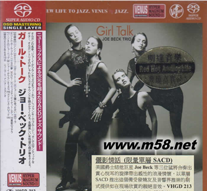 價格為估,以實到貨為準! 倩影情話Girl Talk SACD(僅限SACD機播放)VENUS爵士(m58.net) 著名爵士吉它手JOE BECK 破天荒伙拍CONCORD RECORDS之ORGAN大師 JOEY DEFANCESCO,聯同鼓手IDRIS MUHAMMAD,組成爵士三重奏我團,合力演奏十首以女性作為主題之爵士名曲,開首的一曲“GINGI”,鼓聲襯托出JOE BECK 的吉它彈奏,將此首JOBIM名曲以全新姿態重現,主題曲“GIRL TALK”輕松灑脫,再一次證明三位的配合天衣無縫。日本爵士名牌VINUS RECORDS混音錄制,絕對是爵士發燒友的最佳選擇!