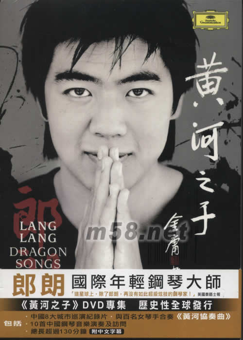 黃河之子DVD(m58.net) [這星球上,除了郎朗,再沒有如此超級炫技的鋼琴家]英國泰晤士報 (黃河之子)DVD專集 歷史性全球發行 中國8大城巿巡演紀錄片·與百名女琴手合奏(黃河協奏曲) 10首中國鋼琴音樂演奏及訪問 總長超過130分鐘 附中文字幕 郎朗被英國留聲機雜志譽為[天才橫溢的藝術家],這部影片紀錄他2005-06年的中國之旅,內容包括音樂會和大師班的精采片段,還深入探訪這位年輕鋼琴家,在璀璨舞臺背后與家人及樂迷的親密寫照.本DVD附有郎朗為[黃河之子]CD專輯上的著名中國音樂親自介紹及演奏這130分鐘的視聽節目,恰恰印證了作曲家譚盾稱郎朗為[一位充滿魔力的詩人]的美譽.