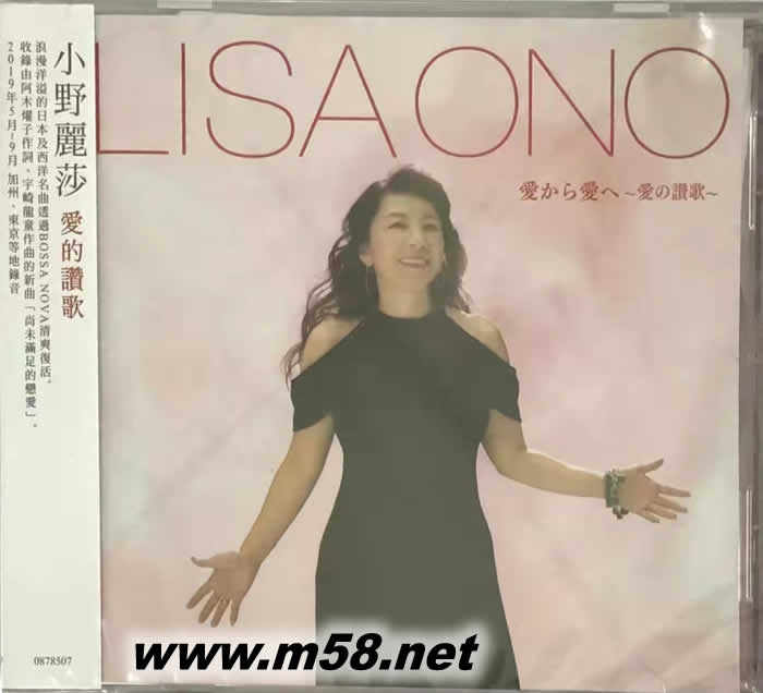 愛的贊歌(m58.net) BOSSA NOVA女王小野麗莎以日語詮釋J-POP翻唱專輯第5彈發行! 巴西圣保羅出生的小野麗莎,幼年時代直到10歲前都在巴西度過,15歲開始自彈自唱,並於1989年正式出道。以渾然天成的自在嗓音,搭配韻律十足的吉他伴奏及其魅力的笑容,轉眼間便將BOSSA NOVA魅力火速擴散至日本全國。 不但曾與BOSSA NOVA之神-Antonio Carlos Jobim、爵士與森巴的巨匠級藝人及João Donato等知名音樂家共演、又在紐約、巴西及亞洲各地舉行公演,獲得極度的成功。包含銷售量超過20萬張的巨作在內,曾四度榮獲日本爵士部門的黃金唱片大賞。2013年巴西政府更頒予她里約布蘭科的國家勛章。身為BOSSA NOVA樂第一把交椅的小野麗莎,其地位現今誰都無法動搖。 最新專輯「愛的讚歌」是由小野麗莎親自挑選曲目,其中包含西洋歌曲日語翻唱在內,還有多首令人懷念的昭和歌謠名曲,並以清新柔美的BOSSA NOVA風格緊緊圍繞。 這次的專輯收錄曲大多都由AOR界廣為人知的創作歌手兼鋼琴家Bill cantos擔任編曲,並於洛杉磯和東京兩地進行音樂錄製。收錄除了首首經典名曲翻唱外,還有阿木燿子、宇崎龍童這黃金組合為小野麗莎創作的新曲「尚未滿足的戀愛」,這張專輯由BOSSA NOVA女王傾力完成讓聽眾感受到愛情酸甜苦辣,是張名符其實的『由愛傳愛~愛的讚歌~』。CD中特別收錄小野麗莎個人歌曲解說之中譯。
