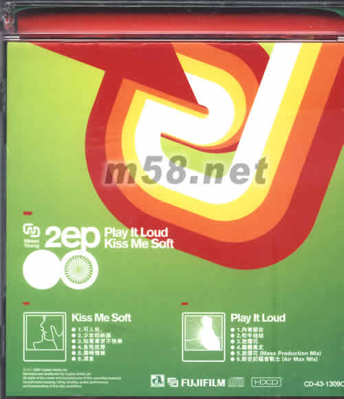 EP One(Kiss Me Soft) 01.可人兒 02.少女的祈禱 03.如果東京不快樂 04.良性反應(yīng) 05.美味情緣 06.深息 EP Two(Play It Loud) 01.內(nèi)有惡女 02.吹牛娃娃 03.放煙花 04.離題萬丈 05.放煙花 (Mass Production Mix) 06.新世紀福音戰(zhàn)士 (Air Max Mix)