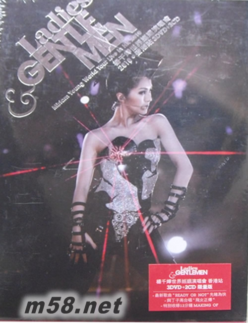 Ladies & Gentlemen Miriam Yeung World Tour Live In Hong Kong 2010 世界巡回演唱會香港站(m58.net) 自去年榮升丁太後,楊千嬅事業愛情兩得意,她主演彭浩翔作品《志明與春嬌》和黃真真導演的新作《抱抱俏佳人》獲一致好評,音樂方面則重返娘家的懷抱,加入新重組的華星唱片,在紅館舉行一連五場的《Ladies & Gentlemen演唱會》于10月7日開鑼,千嬅開場以露肩性感造型示人,又跟十多位男舞蹈員大跳辣身舞,是她繼2007年《All About Love楊千嬅演唱會》再站紅館的演出。 為了演唱會,千嬅特別向at17盧凱彤學吉他表演,又大唱出道以來大熱情歌包括「烈女」、「狼來了」、「小城大事」、「再見二丁目」、「真命天子」、「可惜我是水瓶座」,以及「飲酒思源」、「斗零踭」、「Ready or Not」等新曲。在個唱最後一場,穿上白色婚紗禮服出場的千嬅正式向樂迷介紹準新郎丁子高,又與他甜蜜合唱「飛女正傳」,即時全場哄動,掀起全晚高潮,場面溫馨幸福。在不斷安哥聲下,千嬅以一曲「野孩子」來感謝觀眾支持,為演唱會劃上句號。 《Ladies & Gentlemen 楊千嬅世界巡迴演唱會2010香港站》以三碟裝DVD發行,隨碟特別收錄了演唱會嘉賓許志安和盧凱彤的表演歌曲Bonus track,以及個唱制作特輯。