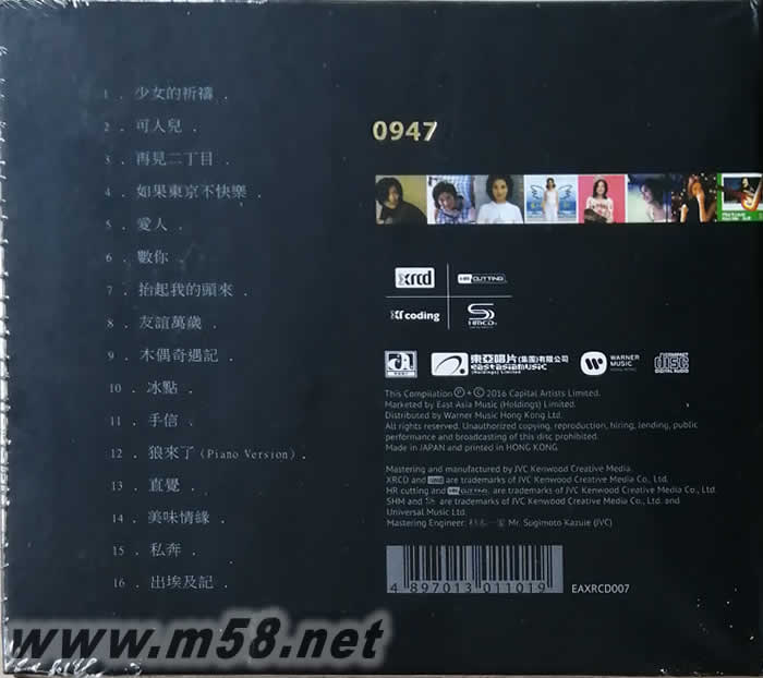 楊千華New XRCD精選16首 限量版(m58.net) 華星唱片(New XRCD) 首批1,000張編碼版限量發行 * 日本原裝進口 JVC原廠壓片 * 高音質(NEW XRCD) 能在所有CD播放器播放 NEW XRCD,經過XR cording處理,再透過DAW (Digital Audio Workstaion) 所輸出的數位資料,經由JVC的錄音師進行母帶后製工程。接著,母帶后製工程所完成之Hi-Bit.Hi-Sampling的High-Resolution素材, 再透過HR cutting進行Direct cutting(刻盤)。然后,將大幅提升的高透明度、高解析素材,以SHM-CD進行壓片。經過全部的后製工程,對原母帶音質細節部份的專業處理,重現如同錄音時的相同品質。 讓聽眾能夠盡情享受到由歌手、製作人、錄音師們所想要呈現的音樂。