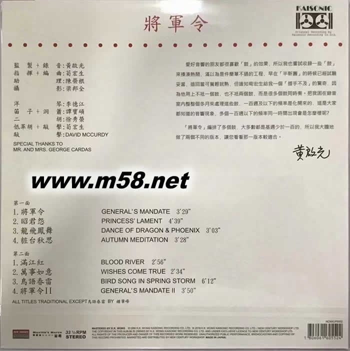 將軍令(二胡、笛子、洞簫) 黑膠(m58.net) 黃啓光錄音系列 MADE IN U.S.A.