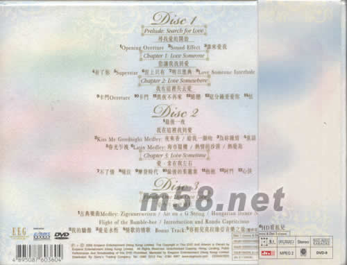 姚玨 莫拉維亞交響樂團(tuán)音樂會(huì)卡拉OK DVD (限量珍藏特別版)(m58.net) DVD-9 DVD採用廣播級高清技術(shù)攝制,全碟採用HD 1080I制式拍攝, 全數(shù)碼96KHZ 24BIT錄音, 令聲畫達(dá)至更完美天碟境界! 限量珍藏特別版加送:祖兒莫拉維亞音樂之旅 (20分鐘制作花絮)