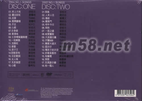 01. 世上只有 -容祖兒 02. 畫出彩虹 -黃耀明 03. 丟架 -TWINS 04. 翡翠劇場 -黃耀明 05. 手足 -BOY'Z 06. 心病 -容祖兒 07. 分身術 -容祖兒 08. 香港地 -陳冠希 09. 士多啤梨蘋果橙 -TWINS 10. 一拍兩散 -容祖兒 11. 洗剪吹 -吳浩康 12. 飲歌 -TWINS 13. 孩子王 -吳浩康 14. 即影即有 -陳冠希 15. 忘記歌詞 -陳奕迅 16. 女人味 -TWINS 17. 先苦后甜 -梁洛施 18. 心眼 -鄭希怡 CD TWO: 2002 NO.1 SONGS 01. 爭氣 -容祖兒 02. 人來人往 -陳奕迅 03. 傷逝 -葉倩文 04. 隨意門 -陳奕迅 05. 明年今日 -陳奕迅 06. 抱抱 -容祖兒 07. 一面之緣 -容祖兒 08. 給愛麗斯 -陳奕迅 09. 大浪漫主義 -TWINS 10. 孖寶668 -TWINS 11. 戀愛大過天 -TWINS 12. 孤兒仔 -陳奕迅/苦榮 13. 壞孩子的天空 -陳冠希 14. 你看我看你 -謝霆鋒 15. 有幾壞 -陳冠希 16. 冥想 -謝霆鋒 17. 啟示錄 -謝霆鋒 18. 他一個人 -陳奕迅