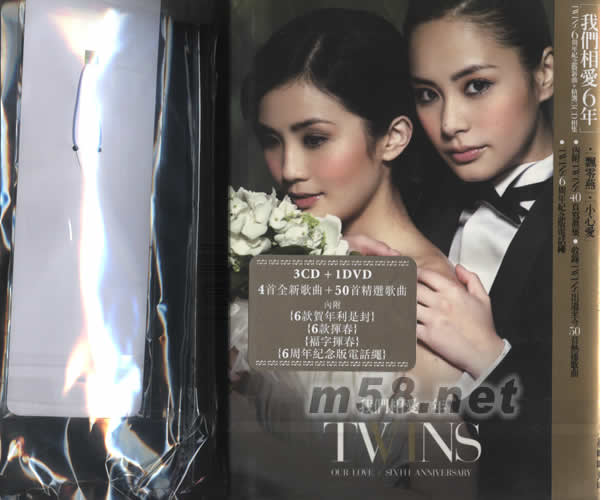 我們相愛6年(新曲+精選)(春節限量版)(m58.net) 本產品已經斷版,建議換成會場特別版。 TWINS+草蜢賀年版DVD 并收錄TWINS+草蜢 熱鬧賀年歌[紅當當飛吻]MV+制作花絮 ·[小心愛]MV ·內附6款TWINS+草蜢賀年利是封 · 6款TWINS+草蜢揮春 · 福字揮春