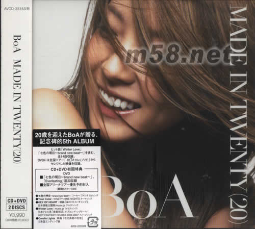 Made In Twenty(CD+DVD日本版)(m58.net) 日本を始め、韓國や、香港、臺灣などアジアの各國で絶大な人気を夸るBoA。その歌聲と、華麗なダンスパフォーマンスは一度見たら虜になること間違いなし!彼女の特征として國內リリース以外にも、韓國など世界的にコンスタントにリリースしていること。ひとつの曲の言語違いや、収録曲が違うアルバムというのが多數リリースされている。ある意味マニアには収集しがいがあるアーティストともいえる。そして、その人気に負けない何