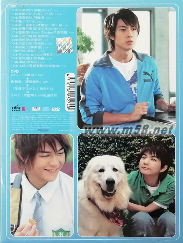 花樣少年少女電視原聲帶(臺灣版)(m58.net) 花樣少年少女 電視原聲帶CD+DVD影音強化版 最MAN的偶像劇 最HI的原聲帶 S.H.E 飛輪海 TANK聯(lián)手出輯 7首全新單曲及9首演奏曲 DVD加值收錄S.H.E[怎么辦]MV+飛輪海[超喜歡你]MV+[花樣少年少女]精彩片段+S.H.E[怎么辦]MV拍攝花絮