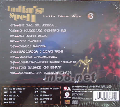 1.EK PAL KA JEENA 2.O HUMDUM SUNIYO RE 3.TU SONI KUDI 4.IT'S MAGIC 5.BOOM BOOM 6.SANJANA I LOVE YOU 7.LADNA JHAGADNA 8.MOHABBATEIN LOVE THEMES 9.THE DANCE OF ENVY 10.AWARAPAN BANJARAPAN 1.短暫的生命 2.伴你一生 3.俏佳人 4.魔術 5.碰碰 6.珊佳娜我愛你 7.別急 8.愛情故事 9.忌妒舞者 10.燈龍