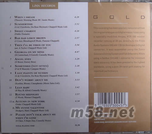 1. When I Dream 2. Summertime 3. Sweet Chariot 4. Bad Bad Leroy Brown 5. Then I'll Be Tired Of You 6. Georgia On My Mind 7. Angel Eyes 8. Sometimes(Not Often) 9. I Got Plenty Of Nuthin 10. Don't Worry About Me 11. Lean Baby 12. Round Midnight 13. a.Autumn In New York b.My Funny Valentine 14. Please Don't Talk About Me When I Gone