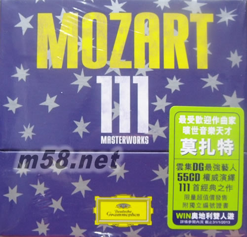 Mozart 111-The Collector’s Edition 55 CD莫札特經典111(限量大套裝)(m58.net) 繼DG 111週年系列產品之后,2012年全新推出的"莫札特經典111”超低價套裝特輯(限量發行),將再度成為新的焦點。這套限量版盒裝CD中包括許多莫札特錄音作品的經典版本,還有眾多知名音樂家的演繹貢獻。 這套“莫札特經典111”第一輯共有55片CD,包裝也與DG111週年紀念套裝一樣,精美外盒還有令人期待的原文曲目與解說。55片CD當中,包括十多首晚期的交響曲、鋼琴協奏曲以及部份小提琴協奏曲,還有六齣經典歌劇與兩首彌撒曲等錄音。天才如莫札特世間少有,在他短短35年生命當中,卻留下歷經兩百年不衰的經典奇作。 這個套裝發行,讓您以實惠的價位也足以聆賞莫札特的音樂美妙。
