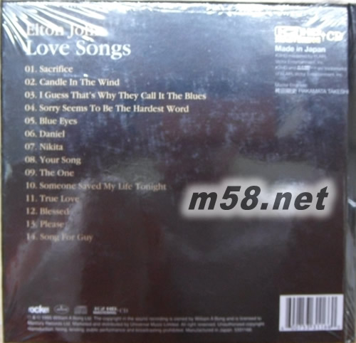 Love Songs (環球K2HD系列)(m58.net) 劃時代頂級發燒母版處理 K2HD Mastering 將100KHz寬頻帶/24bit音頻信息載入 音色更接近模擬(Analogue)聲效 膾炙人口的經典情歌集 ***日本Memory Tech壓制***