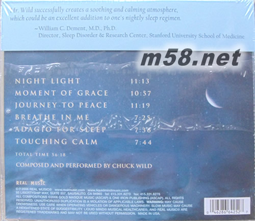 LIQUID MIND VIII SLEEP 失眠治療美樂(m58.net) 本專輯REAL唱片公司官方試聽網(wǎng)址:片段 http://www.realmusic.com/shop/liquid-mind-viii-sleep/prod_88.html Liquid Mind VIII: Sleep 是Liquid Mind系列中的第8張柔和專輯。Liquid Mind 是一個系列的舒緩的療傷音樂,為了滿足人們對有質(zhì)量的休息的高端需求而誕生的。人們一生中幾乎有三分之一的時間是花在睡眠上的,怎么去專注提高預睡的效率對長期的健康生活是個好的投資。Liquid Mind VIII: Sleep就是這么個深度鎮(zhèn)靜劑,也容易被耳朵接受。是人們準備一個美好夜晚的完美伴侶。