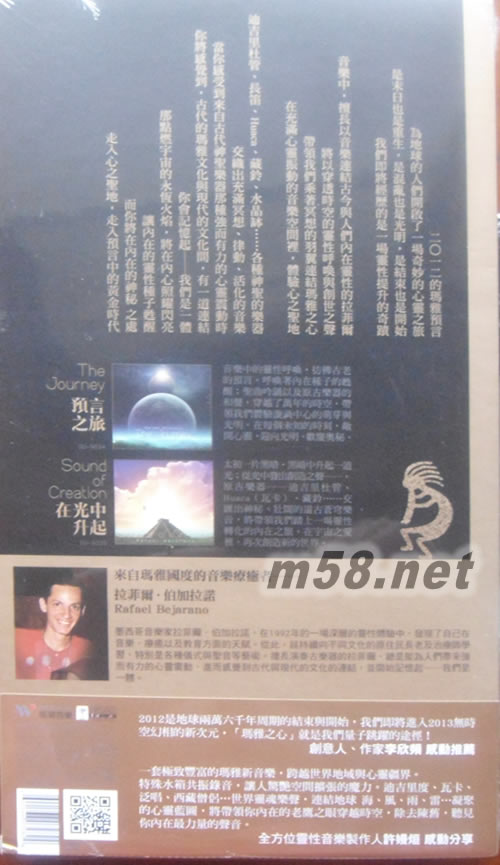 迪吉里杜管、長笛、Huaca、藏鈴、水晶缽……各種神圣的樂器 交織出充滿冥想、律動、活化的音樂 當你感受到來自古代神圣樂器那種強而有力的心靈震動時 你將感覺到,古代的瑪雅文化與現(xiàn)代的文化間,有一道連結 你會記憶起──我們是一體 那點燃宇宙的永恆火焰,將在內(nèi)心照耀閃亮 讓內(nèi)在的靈性種子甦醒 而你將在內(nèi)在的神秘之處 走入心之圣地,走入預言中的黃金時代