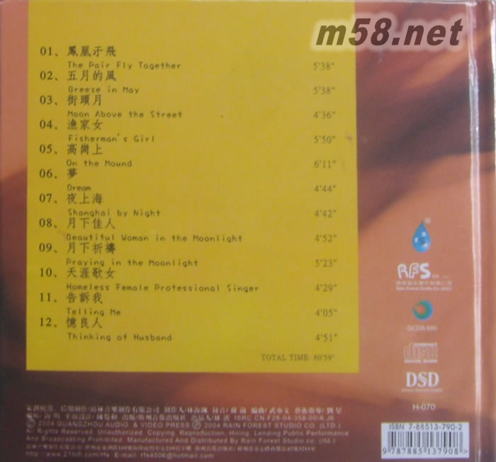 1、鳳凰于飛 2、五月的風 3、街頭月 4、漁家女 5、高崗上 6、夢 7、夜上海 8、月下佳人 9、月下祈禱 10、天涯歌女 11、告訴我 12、憶良人