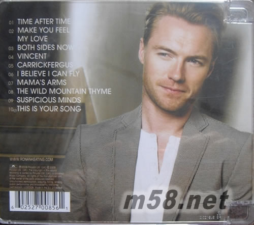 1. Time After Time 愛無止盡 〔辛蒂露波1984年全美熱門單曲榜冠軍曲〕 2. Make You Feel My Love 感受我的愛 〔巴布迪倫1997年名作,比利喬與葛斯布魯克斯翻唱曲〕 3. Both Sides Now 一體兩面 〔瓊妮蜜雪兒1968年全美熱門單曲榜第8名招牌作〕 4. Vincent 梵谷之歌 〔唐麥克林1972年勇奪英國金榜冠軍作〕 5. Carrickfergus 追憶故鄉 〔18世紀愛爾蘭民謠,范莫里生與瓊拜雅翻唱曲〕 6. I Believe I Can Fly 愛飛翔 〔勞凱利榮獲葛萊美獎肯定的全美熱門單曲榜亞軍曲〕 7. Mama’s Arms 媽媽的懷抱 〔約書亞凱迪森1993年首張專輯代表作〕 8. The Wild Mountain Thyme 荒山的百里香 〔愛爾蘭民謠,搖滾公雞洛史都華翻唱曲〕 9. Suspicious Minds 猜疑的心 〔貓王1969年全美熱門單曲榜冠軍名曲〕 10. This Is Your Song 給妳的歌 〔羅南創作曲追憶母親之歌〕