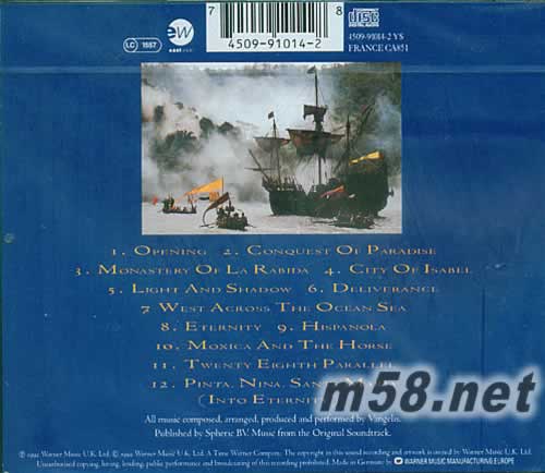 vangelis·1492 conqvest of paradise 征服天堂 電影原聲專輯背面圖片