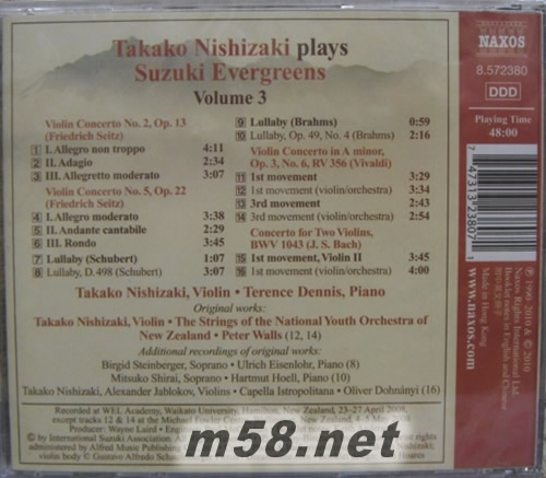 西崎崇子演奏鈴木名曲 (第三輯)(m58.net) 西崎崇子演奏鈴木名曲 Takako Nishizaki plays Suzuki Evergreens Takako Nishizaki, Violin Terence Dennis, Piano
