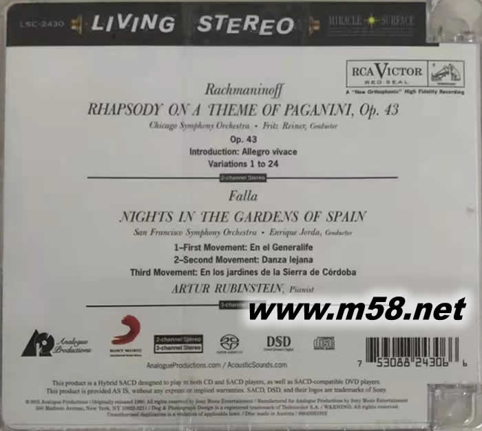 Rachmaninov& Falla 拉赫曼尼諾夫:帕格尼尼主題狂想曲&法雅:西班牙花園之夜 (Living Stereo 立體聲名盤 SACD )(m58.net)
