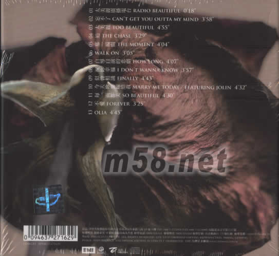 1.太美麗廣播電臺RADIO BEAUTIFUL 2.忘不了GAN'T GET YOU OUTTA MY MIND 3.太美麗TOO BEAUTIFUL 4.追THE CHASE 5.那一瞬間THE MOMENT 6.WALK ON 7.自導自演的悲劇 HOW LONG 8.祝你幸福I DON'T WANNA KNOW 9.似曾相識FINALLY 10.今天你要嫁給我MARRY ME TODAY /FEATURING JOLIN0 11.每一面都美SO BEAUTIFUL 12.不愛FOREVER 13.OLLA