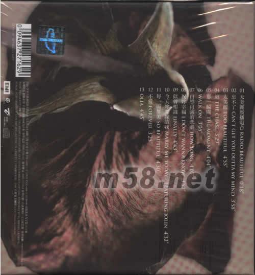 太美麗(臺灣版)(m58.net) 陶喆 時光已經沓但那美好永遠在心中盛開……音樂心浪漫時人 創作三部曲之第二章太美麗 六地頂尖音樂人連線打造 臺北·香港·上海·新加坡·洛杉機,紐約同步制作 特別推薦:忘不了,太美,今天你要嫁給我(蔡依林對唱曲)特別收錄廣告曲:每一面都美,那一瞬間WALK ON