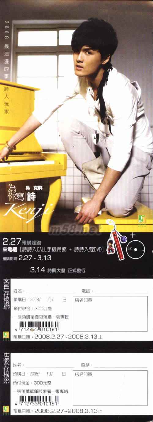 為你寫詩(臺灣預購版)(m58.net) 預購單尺寸:25.8*9.5CM 預購贈品:匙鏈