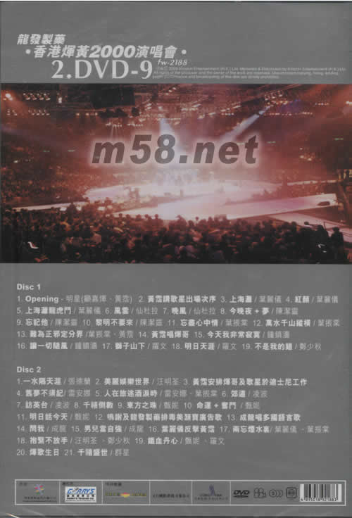 價格為估,以實到貨為準! 龍發(fā)制藥 香港輝黃2000演唱會(m58.net) 香港輝黃2000演唱會 全長三小時多角度 演唱會版及卡拉OK版DVD 環(huán)迴立體聲AC-3(5.1)