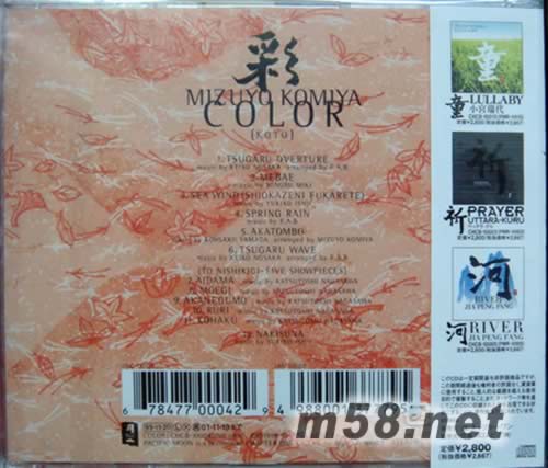 1 - Tsugaru Overture - Mizuyo Komiya, Nosaka, Keiko 2 - Mebae - Mizuyo Komiya, Miki, Minoru 3 - Sea Wind (Shiokazeni Fukarete) - Mizuyo Komiya, Ishii, Yukiko 4 - Spring Rain - Mizuyo Komiya, F.A.B 5 - Akatombo - Mizuyo Komiya, Yamada, Kosaku 6 - Tsugaru Wave - Mizuyo Komiya, Nosaka, Keiko 7 - Aidama - Mizuyo Komiya, Nagasawa, Katsutosh 8 - Moegi - Mizuyo Komiya, Nagasawa, Katsutosh 9 - Akanegumo - Mizuyo Komiya, Nagasawa, Katsutosh 10 - Ruri - Mizuyo Komiya, Nagasawa, Katsutosh 11 - Kohaku - Mizuyo Komiya, Nagasawa, Katsutosh 12 - Nakisuna - Mizuyo Komiya,