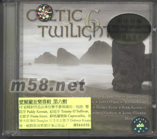 凱爾特曙光 6 Celtic TWILIGHT 6 愛爾蘭音樂專輯第六輯 凱爾特的曙光 6 新世紀純音樂(m58.net) 請點看產品正、背面大圖 12首精彩作品由多位樂手參與演出,包括:豎笛手PADDY KEENNAN,吉它手TOMMY O’SULLIVAN,女歌手FIONA JOYCE ,蘇格蘭我隊CAPERCAILLIE,音樂大師BILL DOUGLAS及著名女歌手DOLORES KEANE等,絕對是音樂愛好者之珍品!