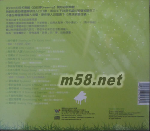 作為出道十年來的首張精選,本專輯不僅收錄經(jīng)典韓劇「冬季戀歌」的雋永配樂〈雨中漫步〉、〈雨中等候〉,更有歷年專輯中白日夢所鐘愛的曲目,輔以他所擅長的現(xiàn)代詩文,將信手拈來的生活點滴融入,成為一張筆觸輕巧、帶有濃厚「詩意」的「夢」的精選集。 白日夢,是作曲家、演奏家,也是詩人、畫家, 自由游走在音樂、文學(xué)、繪畫等各種領(lǐng)域。 2001年發(fā)行第一張個人鋼琴獨奏專輯《白日夢Dreaming》, 因收錄經(jīng)典韓劇『冬季戀歌』的鋼琴配樂,發(fā)行后變迅速躍上暢銷排行榜, 成為首位在海外發(fā)行New Age專輯的韓國鋼琴家。 出道十週年來,陸續(xù)推出鋼琴獨奏、合奏或含有插畫等不同型態(tài)的專輯, 他詩意而充滿直覺性的琴聲,受到亞洲地區(qū)樂迷熱烈的喜愛, 不僅在華人地區(qū)創(chuàng)下銷售佳績,也是韓國近十年來新世紀鋼琴家的代表人物。