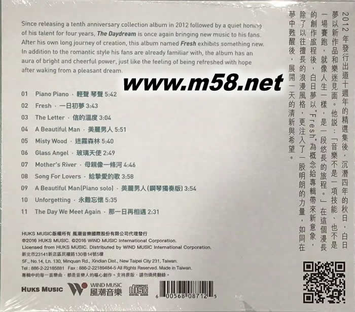一日初夢(m58.net) 韓國鋼琴詩人白日夢 暌違四年的朝氣之作 夢的原野散發鮮活味道 是一天最好的開始 2012年發行出道十週年的精選集后,沉潛四年的秋日,白日夢以新作品和樂迷見面。他說:「音樂不是一項技能、也不是一場賽跑,就像人生一樣,是一段悠長的旅程。」在這個漫長的創作旅程后,白日夢以 ”Fresh” 為概念給專輯帶來新意象,除了以往擅長的浪漫風格,更注入了一股明朗的力量,如同在夢中甦醒后,展開一天的清新與希望