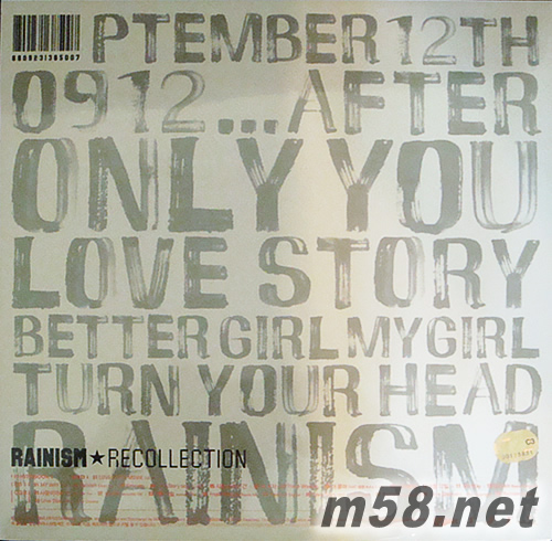 Rainism Recollection (限量3萬張)(m58.net) 字幕: 英文, 日文, 韓文, 簡體中文 《Rainism Recollection》為3萬張限定生產特別版,附2CD、DVD,及豪華寫真集。 CD除原本的12首歌曲之外,加收「Rainism」和「Love Story」的英語、日語及國語版本;「9月12日」、「My Girl」和「Love Is」的acoustic版本;「Fresh Woman」的Urban mix版本。DVD則收入Rain與河智苑合演「Love Story」MV的35分鐘完全版。 專輯名稱「Rainism」由Rain親自決定,代表著 Rain主義。銳意成為音樂人的Rain,更全面參與專輯的制作,一手包辦選歌、制作和編舞。Rain也會首次挑戰創作曲詞,展現出全新的音樂風格。 首支主打R&B情歌「Love Story」由V.O.S.的Choi Hyung Joon作曲,Rain以自己過去的愛情經驗寫下歌詞。MV也由Rain執導和演出,以音樂電影的形式講述一個壞男人的愛情故事,并特別邀來河智苑擔任女主角。另一支主打「Rainism」的節拍強勁,由Usher、Justin Timberlake的排舞師編舞,再展Rain的舞王風範。
