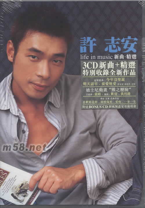 LIFE IN MUSIC(新曲+精選)(m58.net) 3CD新曲+精選 特別收錄全新作品 冠軍歌曲:今年沒圣誕 明天請早,要愛便愛 迪士尼動畫“熊之歷險”主題曲:前路 插曲:歡迎·我的路 華星正東經(jīng)典作品 喜歡你是你·雨后陽光·愛你·一步一步 附送BONUS CD 新城無盡安歌演唱會