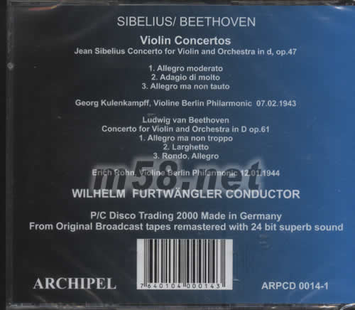 SIBELIUS BEETHOVEN小提琴協奏曲專輯背面圖片
