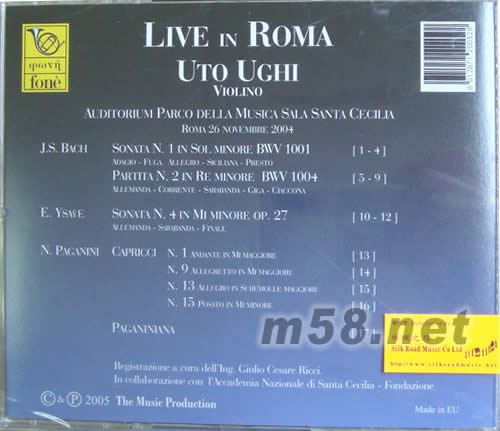 UTO GUHI LIVE IN ROMA(在羅馬的現(xiàn)場演出)(m58.net) 意大利國寶級小提琴大師烏托.烏季(UtoUghi)二零零四年十一月一場羅馬實況錄音演奏會,曲目帕格尼尼的隨想曲,巴赫的無伴奏小提琴鳴奏曲及伊薩伊的小提琴奏鳴曲,一張不可錯過的專輯.