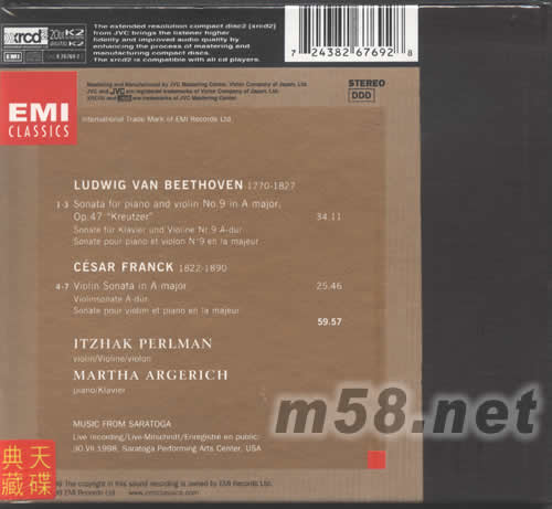 ARGERICH PERLMAN 阿格里奇XRCD專輯背面圖片
