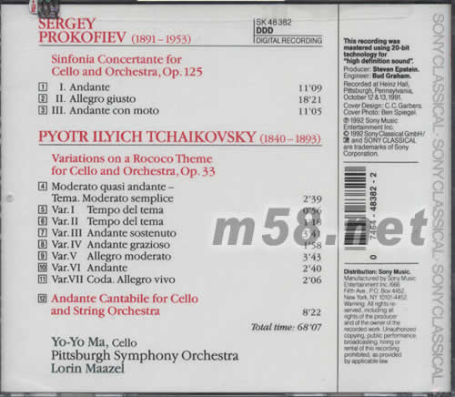 普羅科菲夫 老柴PROKOFIEV SINFONIA CONCERTANTE MA MAAZEL專輯背面圖片