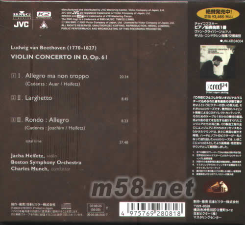 海飛茲演奏貝多芬︰小提琴協(xié)奏曲 XRCD24 (日本版)(m58.net) 錄音:1955年 名列史上四大小提琴協(xié)奏曲之首 海飛茲的曠世名演之一 海飛茲:小提琴